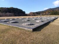 ・また、奥(中央)に目立つ3基の石碑は、近年(明治・大正期に)建立されたもので、政庁機能終焉後に荒廃する「太宰府跡」保護への地元の強い願いの顕れとのことです。・「太宰府展示館」は、太宰府政庁跡の調査で見つかった遺構を保存・公開している施設です。