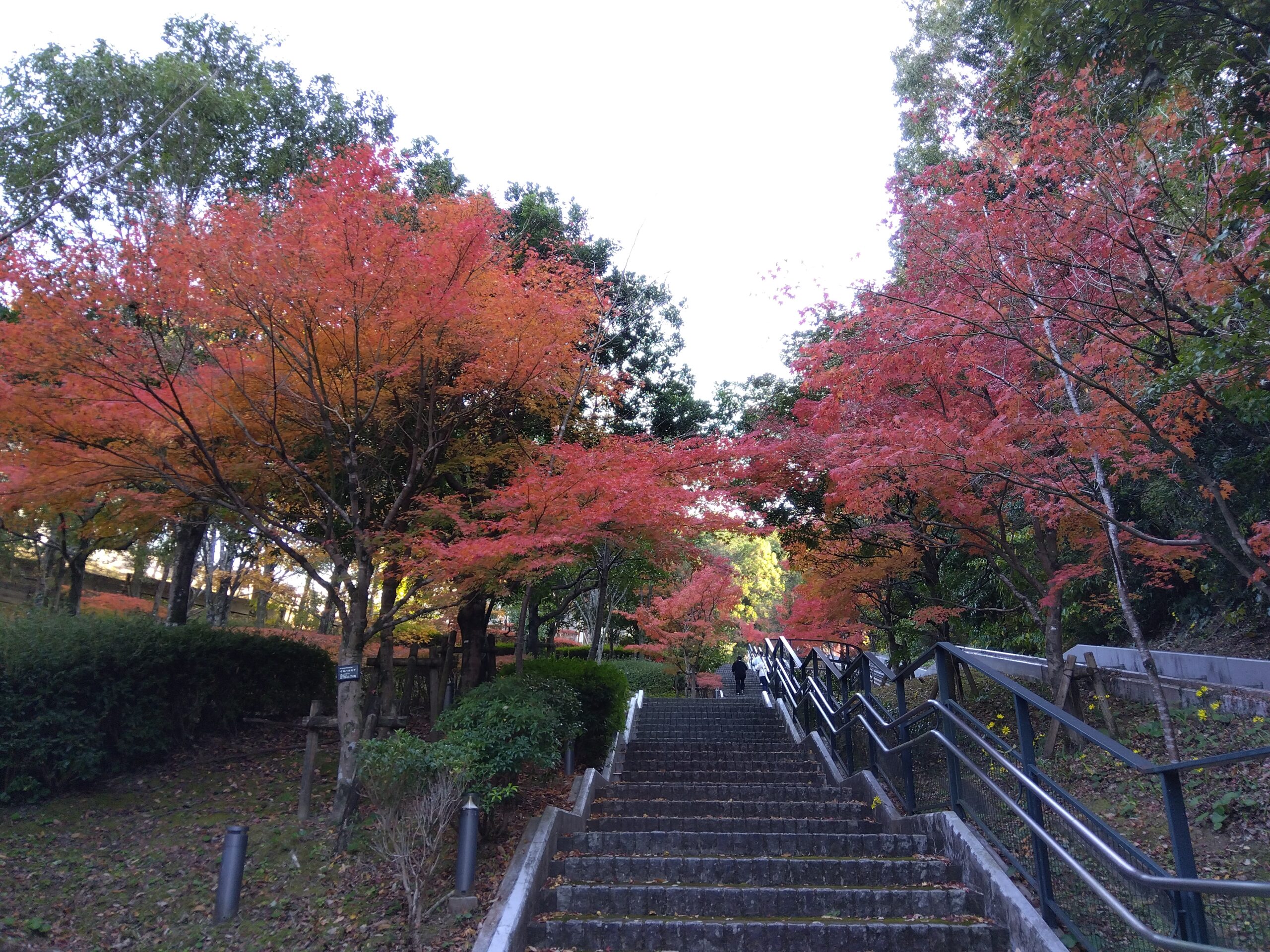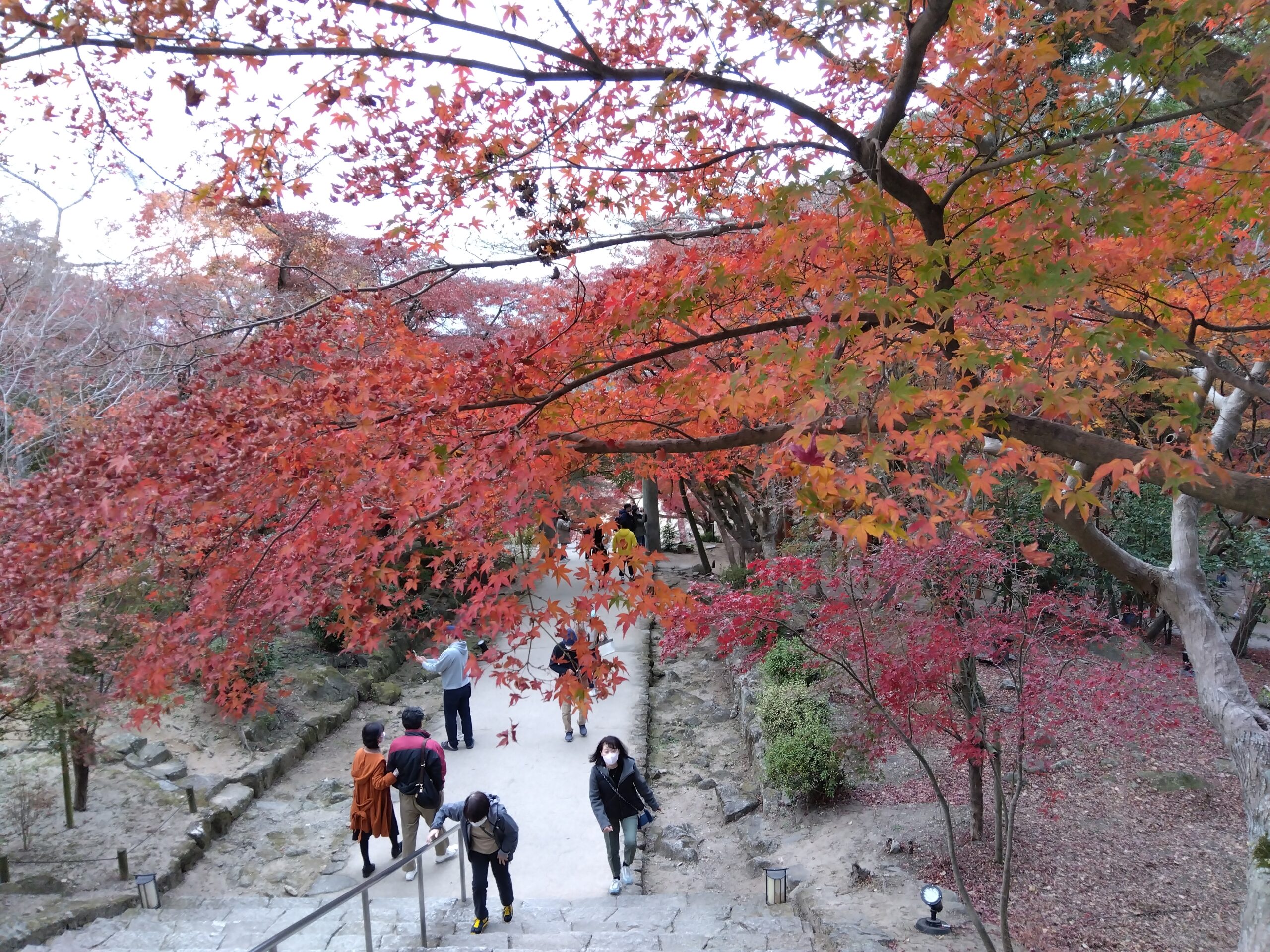 ・光明禅寺は、鎌倉時代に創建されたと伝えられ、枯山水・石庭苔寺として親しまれている寺ですが、現在改装中のため写真を省略し、光明禅寺側から国博に登る階段(現在紅葉見頃)を添付しました。 -