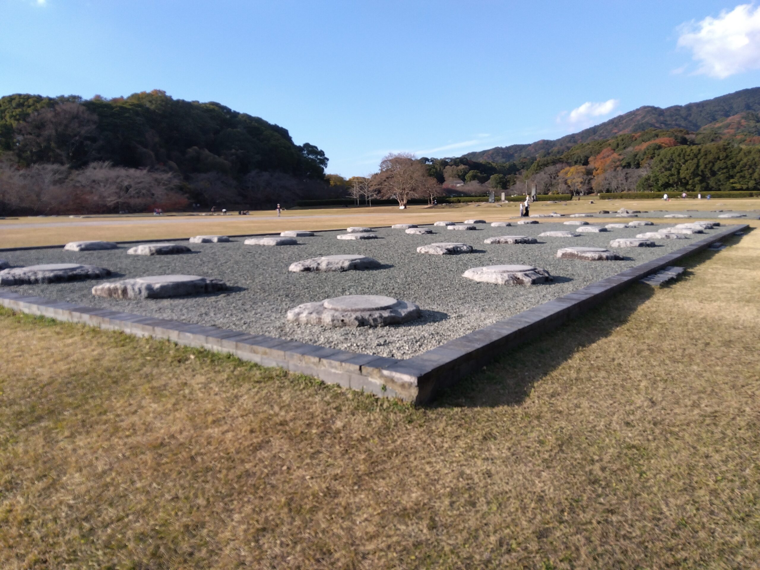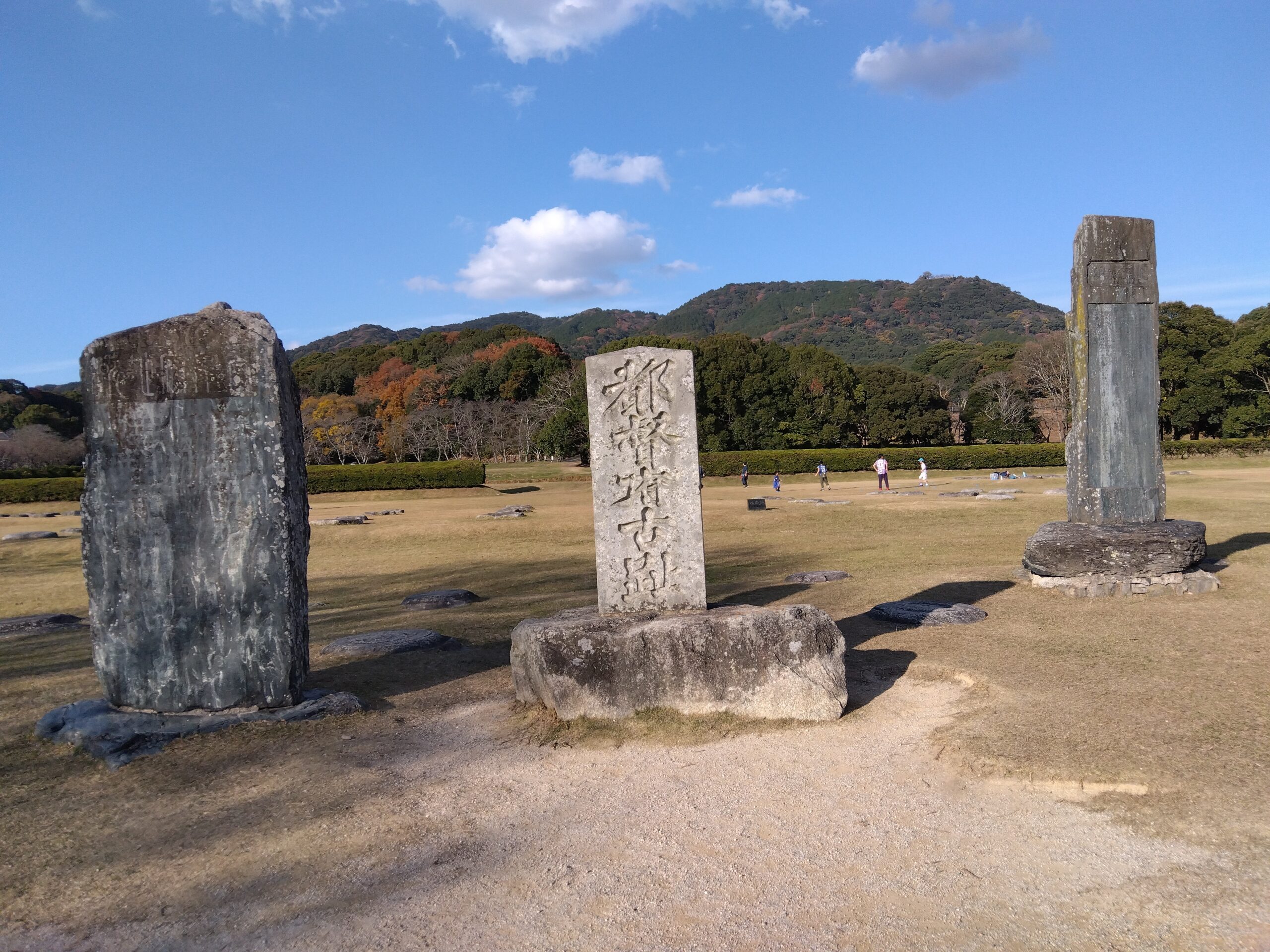 ・「太宰府政庁跡」は、7世紀後半から12世紀前半にかけて、九州を統括した外交・貿易などの対外交渉の窓口として重要な役所「太宰府」が置かれた場所で、現在地表面に見える礎石群は、平安時代後半(政庁第Ⅲ期)のものです。