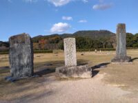 ・また、奥(中央)に目立つ3基の石碑は、近年(明治・大正期に)建立されたもので、政庁機能終焉後に荒廃する「太宰府跡」保護への地元の強い願いの顕れとのことです。・「太宰府展示館」は、太宰府政庁跡の調査で見つかった遺構を保存・公開している施設です。