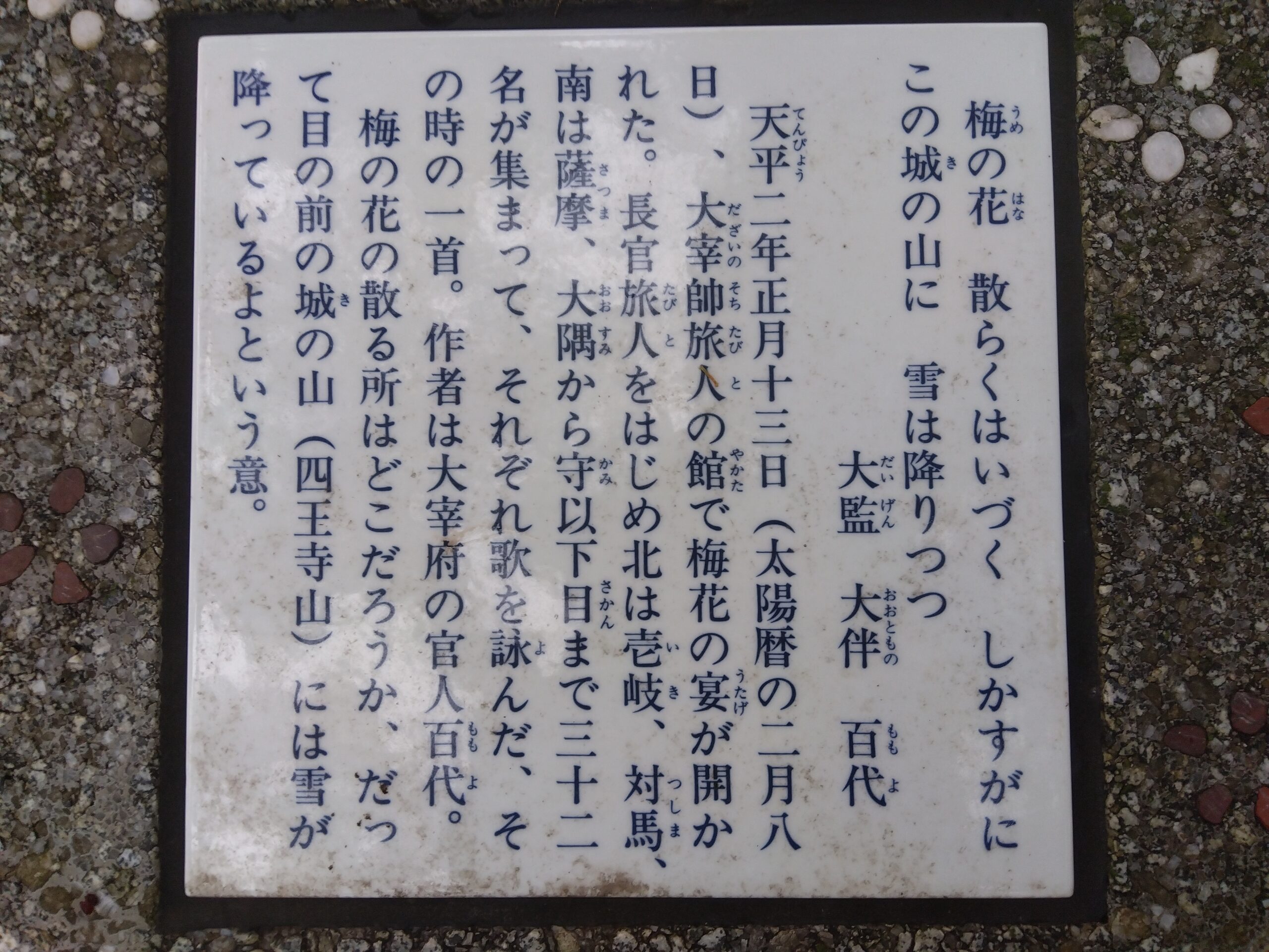 太宰府市には44基の「万葉歌碑」が整備され、この公園には10基あり、その一部を紹介します。※ {追記} 令和6年を迎え、お目出度う御座います。 引き続き、よろしくお願いします。