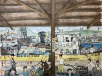 絵の真ん中に「安全第一」を掲げ、地震災害は防げないけど、安全を第一にと願いを込めています。