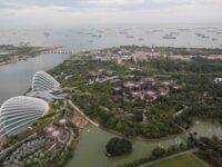 写真は、有名なマリーナベイ・サンズ・ホテル付近の昼や夜の様子、そのホテル屋上から見たガーデン・バイ・ザ・ベイ、セントサ島のマーライオンです。