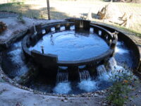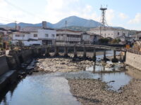 その後、竹田の荻に着き「白水ダム」を見に行きました。堰堤を流れる水の模様に、家内や両親が大変感動していました。改めて、土木遺産のすばらしさは、だれにでも分かるものだと実感しました。その後、「円形分水」を見て荻の里温泉に宿泊しました。宿から観える九重連山の雄大さに感動しました。