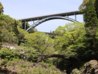 まず始めに、高千穂峡を訪れ、「真名井の滝」などを散策しました。残念にも、増水により予約していたボートには乗れませんでしたが、「土木遺産な旅のススメ」にも載っていた「高千穂三橋」をやっと観ることができ感無量でした。