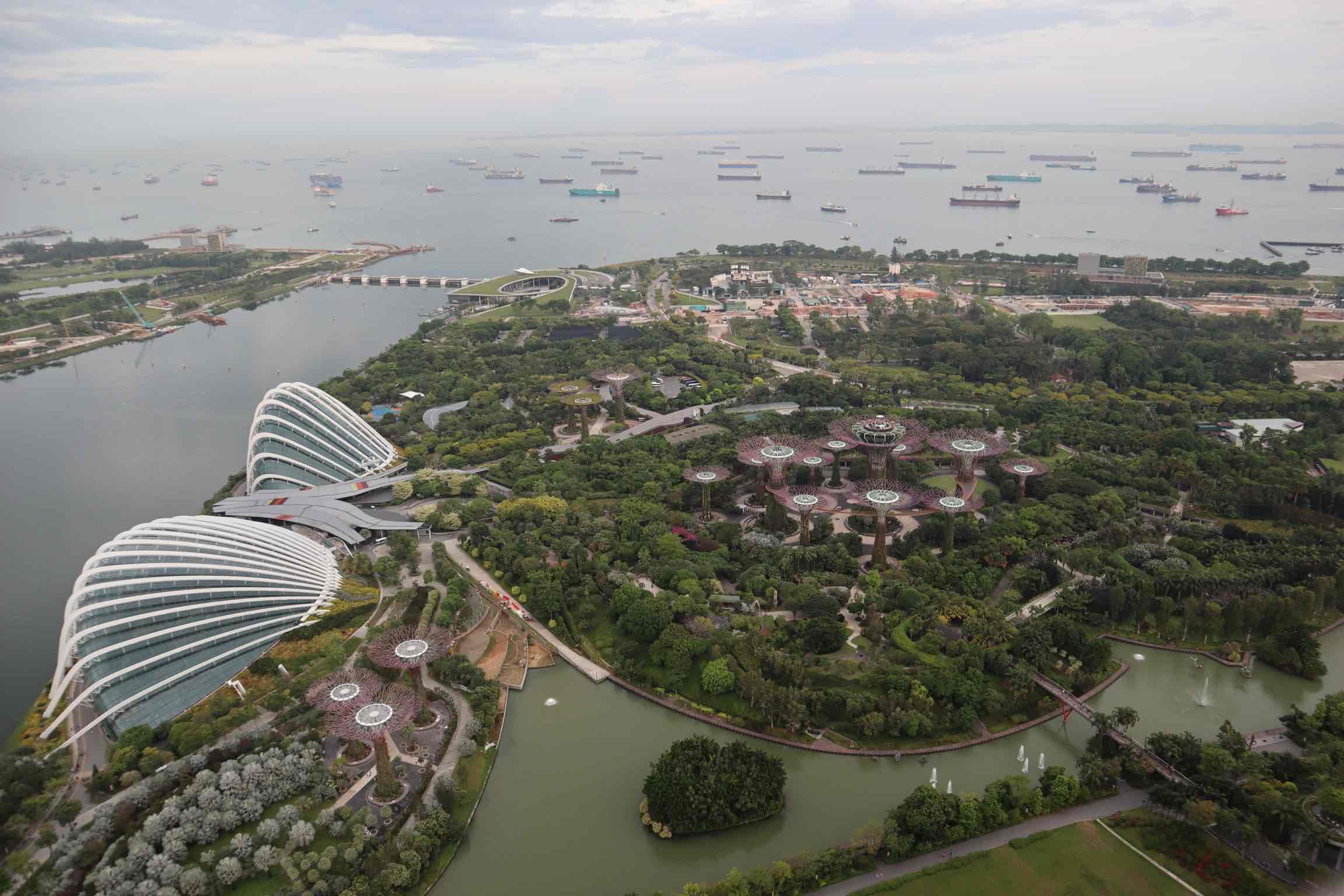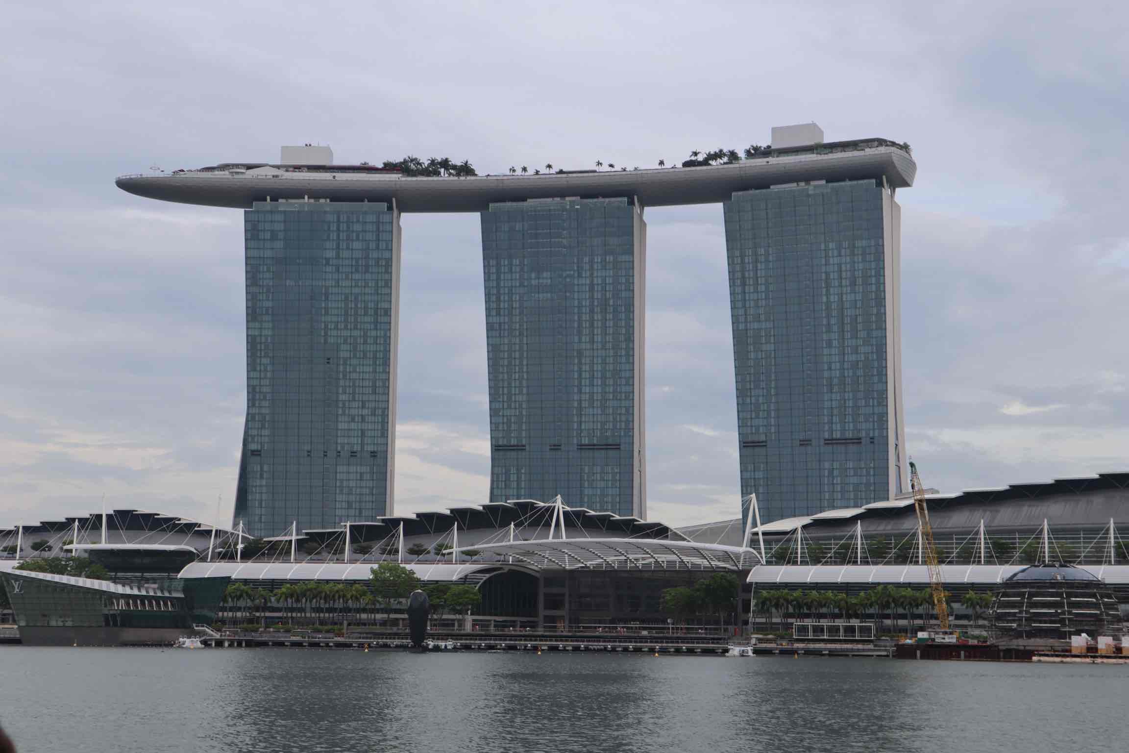 写真は、有名なマリーナベイ・サンズ・ホテル付近の昼や夜の様子、そのホテル屋上から見たガーデン・バイ・ザ・ベイ、セントサ島のマーライオンです。