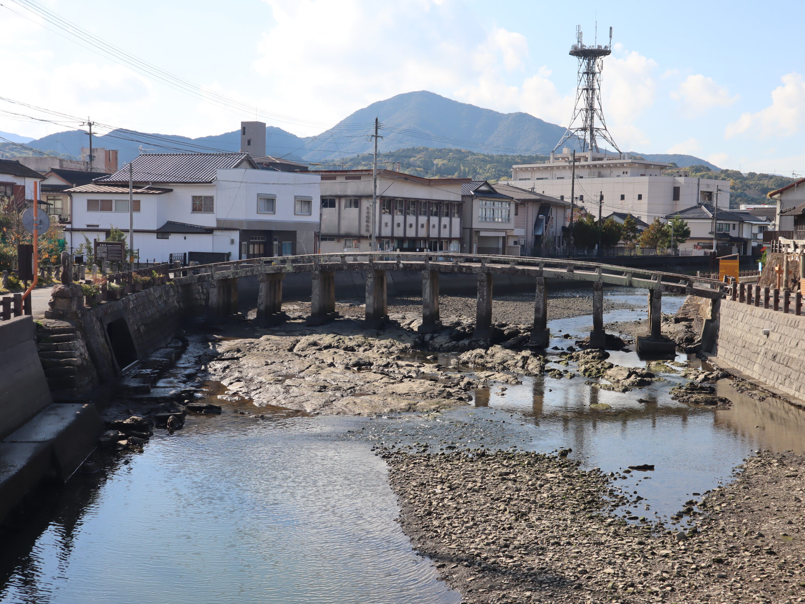天草市では、土木遺産である1832年建造の祗園橋を訪れました。石造桁橋では日本最大級とのことでしたが、老朽化がひどく通行禁止となっていました。その後、天草キリシタン館を訪れ、1637年の天草・島原の乱では、この橋の付近が激戦地となり、数多くの戦死者が出たこと学びました。そして、オリーブ園やおっぱい岩などを経由し、苓北町に宿泊しました。翌日は、近くの富岡城跡を訪れた後、三角西港から天草1号橋などを眺め、早めの帰途に着きました。