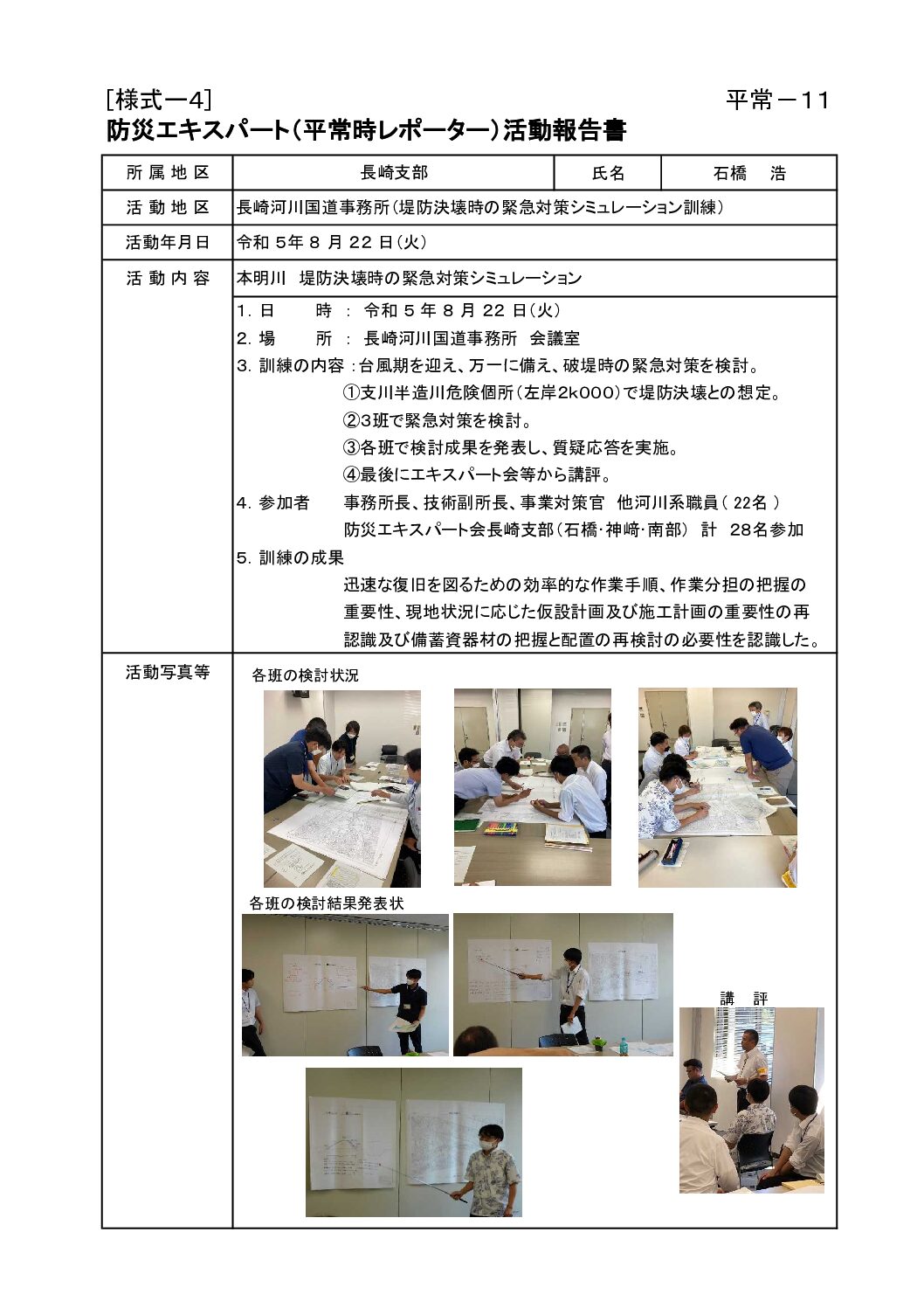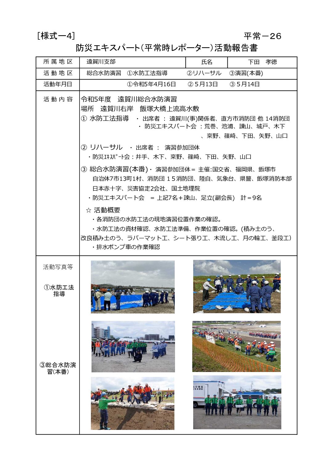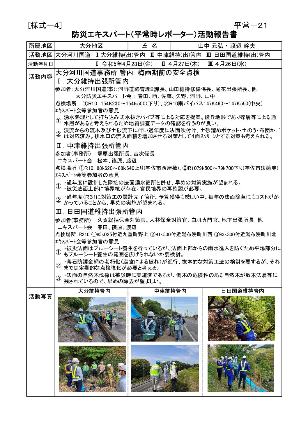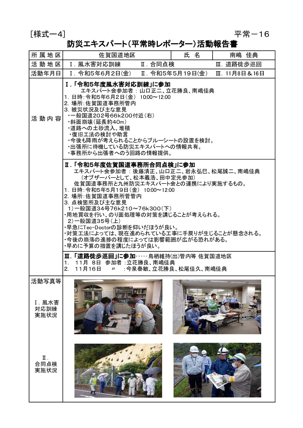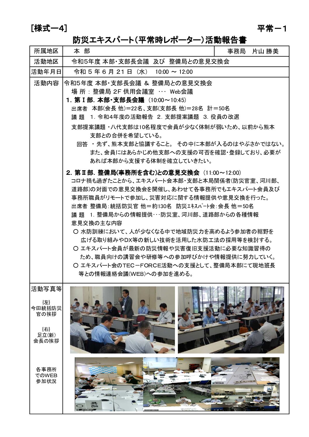 お疲れ様です。九州防災エキスパート会の事務局代行の秀徳です。当会の令和5年度の活動報告(抜粋版)についても、今回、追加してお知らせ致します。昨今、九州地方整備局の本部防災部局や各事務所において、整備局職員との連携した取り組みが進んでいます。是非、一読願います。