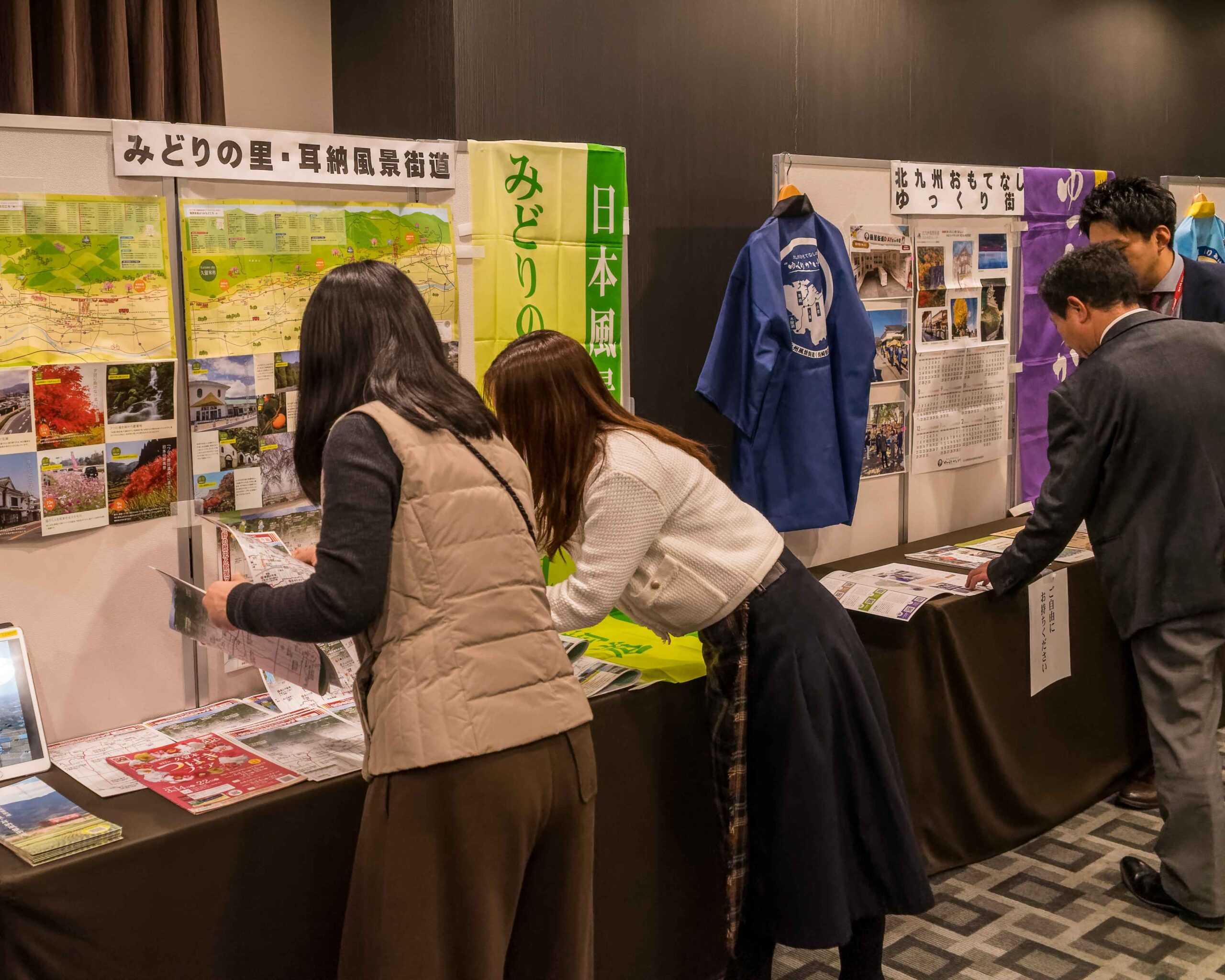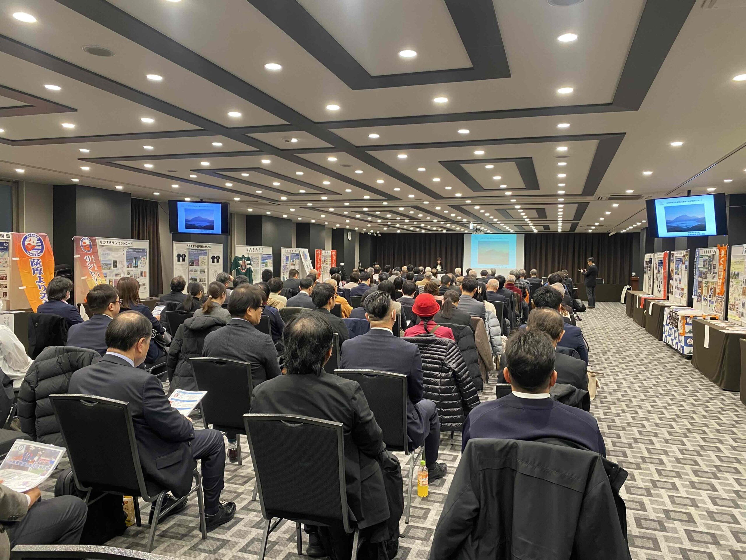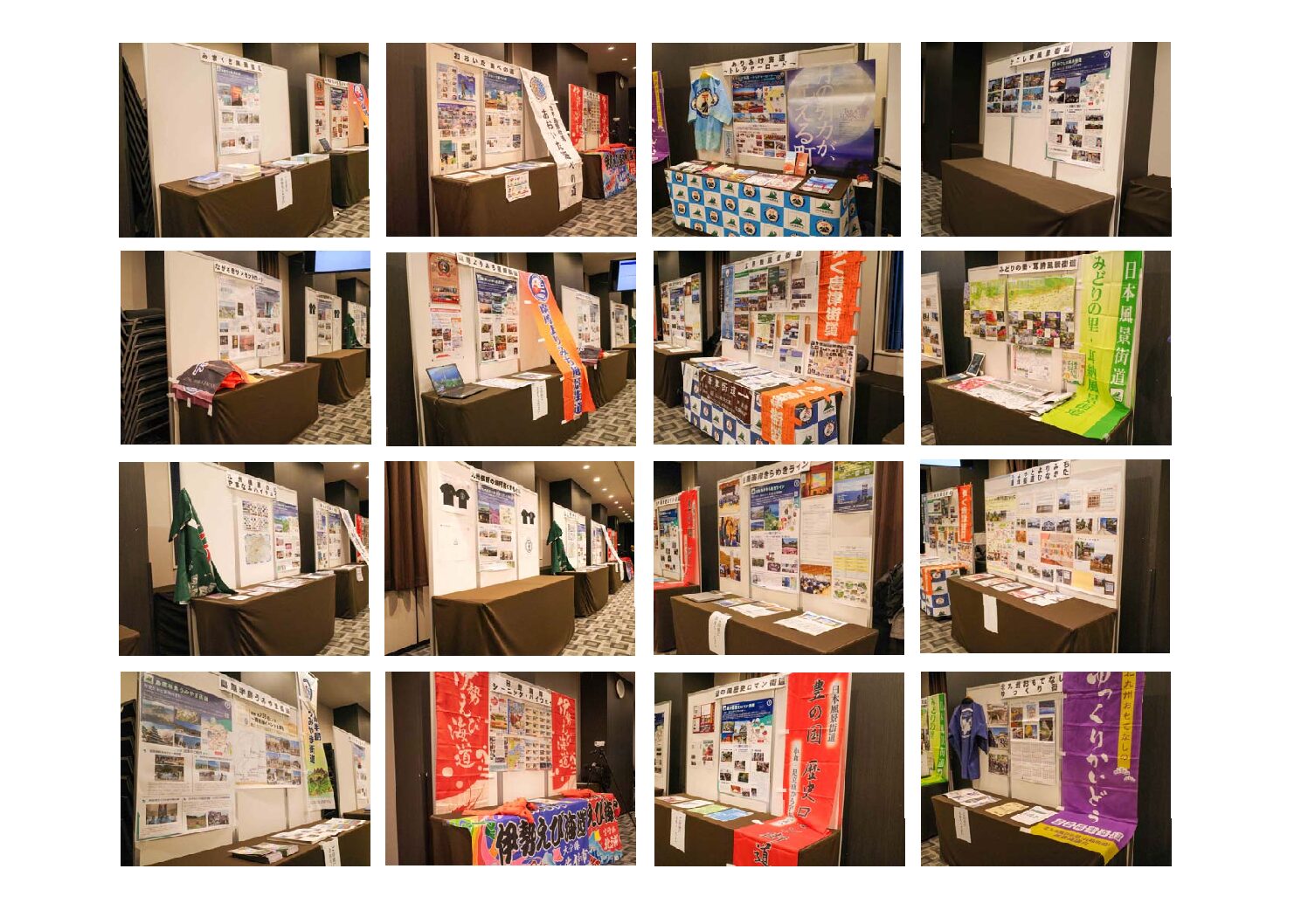 会場には、九州風景街道16ルートのポスターと、それぞれの特徴を活かし飾り付けられたブースを設置した。
