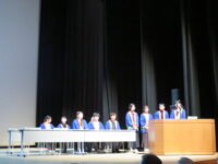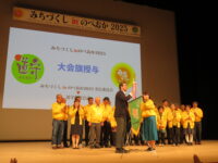 のお二人による大会宣言(案)は参加者の皆さんによって承認されました。≪大会旗授与≫